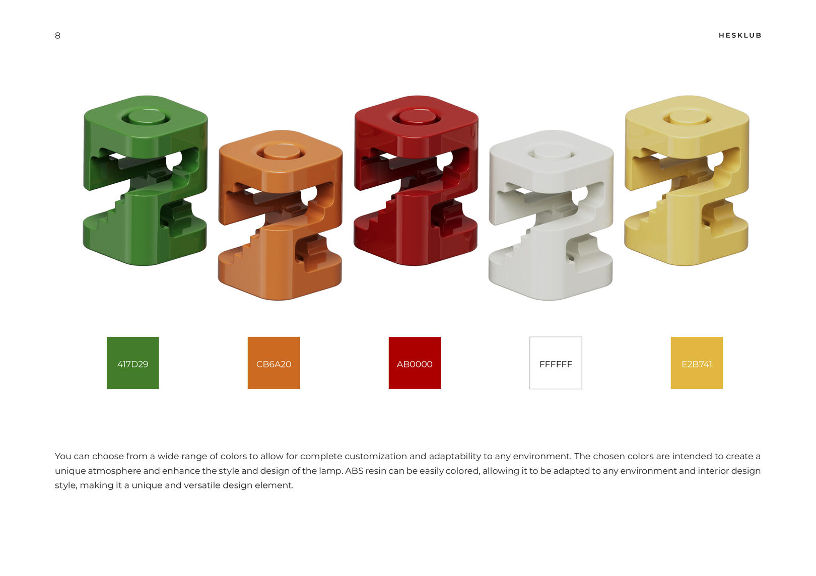 The Hesklub lamp offers two different interpretations depending on the chosen orientation. On one side, it presents an intricate and complex structure, with lines intertwining and overlapping, creating a labyrinthine effect. This perspective appeals to those who appreciate Escher’s work, with his ability to challenge perception and play with optical illusions. On the other side, the Hesklub lamp reveals a more essential and minimalist geometric shape that perfectly adapts to any context and interior style. This versatility allows the lamp to harmoniously integrate into different environments, adding a touch of contemporary elegance.
